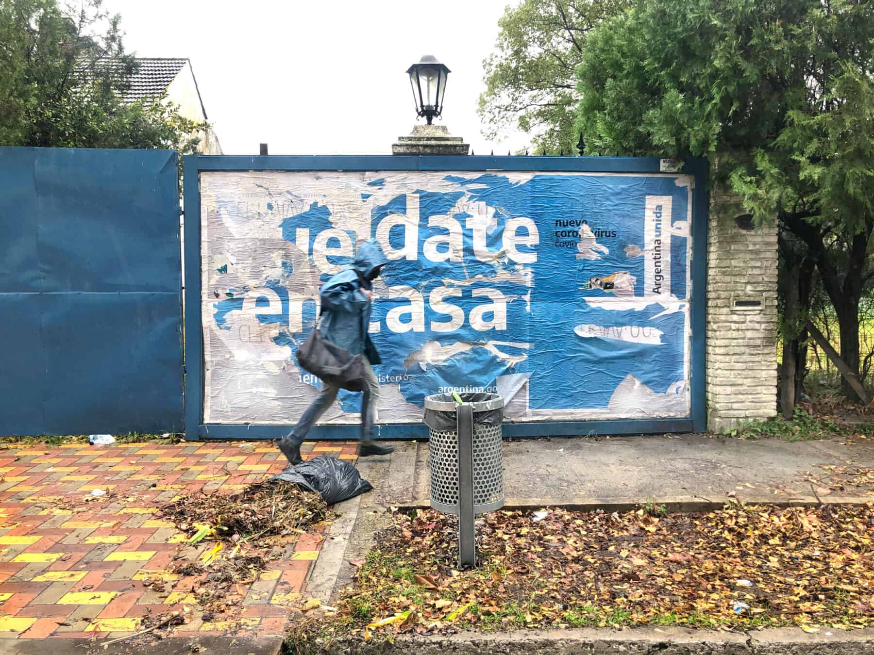 Fue una cuarentena que se extendió infinitamente, atravesando las estaciones del año sin cesar. Este lugar se encuentra a una cuadra de mi hogar, y se trata de un terreno abandonado que ha estado en venta durante más de una década. Un muro de carteles de publicidad vial lo rodea, y en aquellos últimos días de Marzo, amaneció con el aviso implorante, estratégico, según la inocencia de quien lo observe, de “Quédate En Casa”.